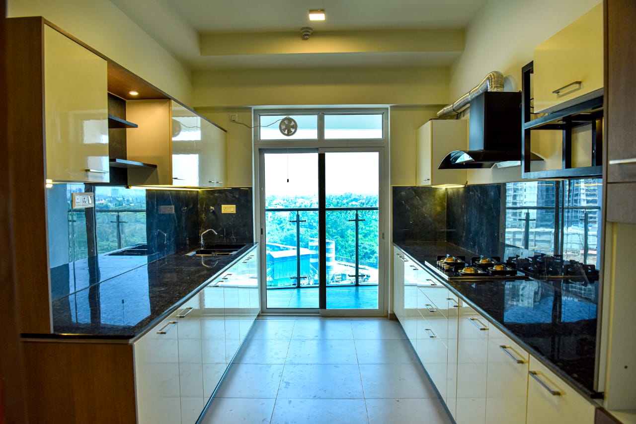 Three bhk (2250 sq ft) , 3 bathrooms, 3 balconies, servant quarter with separate bathroom & entry.3. ea view from drawing room + master bedroom, other balconies facing bird sanctuary, Infinity swimming pool, Club facility (library, restaurant, coffee shop, grocery shop, conference/party halls, guest rooms, badminton, tennis, basketball court), amphitheater, ample free parking for guests. 4. Fully furnished appt Aesthetic interior & decor. Solid rosewood furniture (7 seater sofa, dinning table, wardrobes, beds with storage and mattress, dressing table, study table, bathroom with geyser & modular storage). Split ACs and ceiling fans in all rooms. 7. Modular kitchen by Livspace, include Faber Chimney, 4 burner Hob and pipeline gas+water purifier Wooden flooring in master bedroom. 9. One covered parking space Audio/video security at house entrance. . LED TVs in Drawing Room and Master Bedroom 12. Fully automatic washing machine 13. Three months advance security deposit. 14. For rent to families, on company lease to banks/multinational companies. 15. Rental agreement for 11 months and renewed every year with an increment of 5 % every successive year